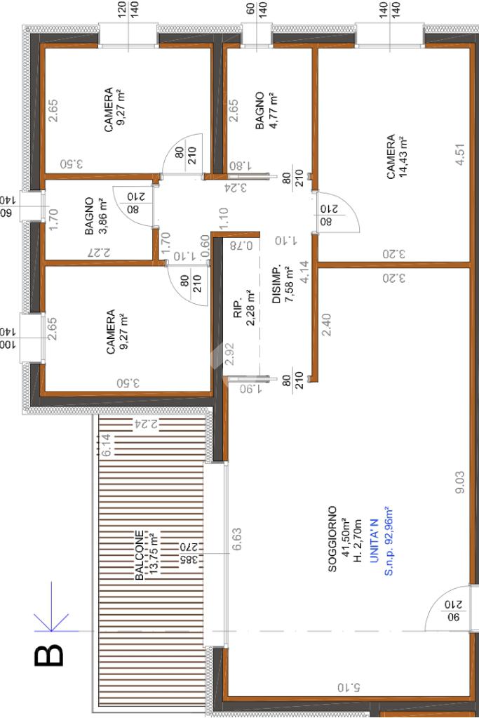 Mediante un comodo disimpegno si accederà alla zona notte nella quale sulla destra si trova la prima camera matrimoniale seguita dal primo bagno finestrato e di seguito le ulteriori due camere ed il secondo bagno.