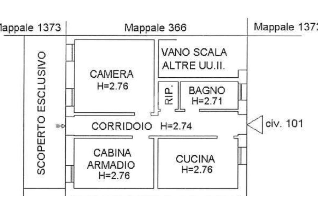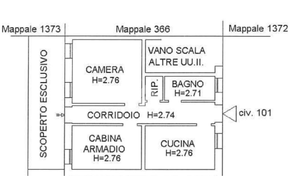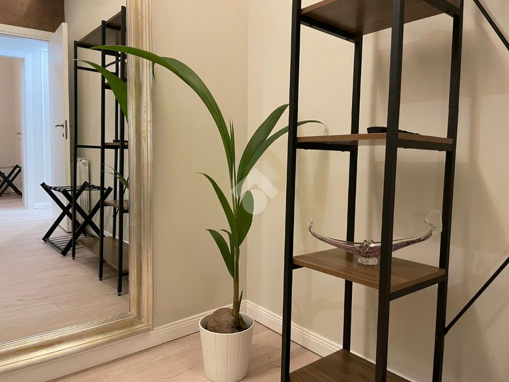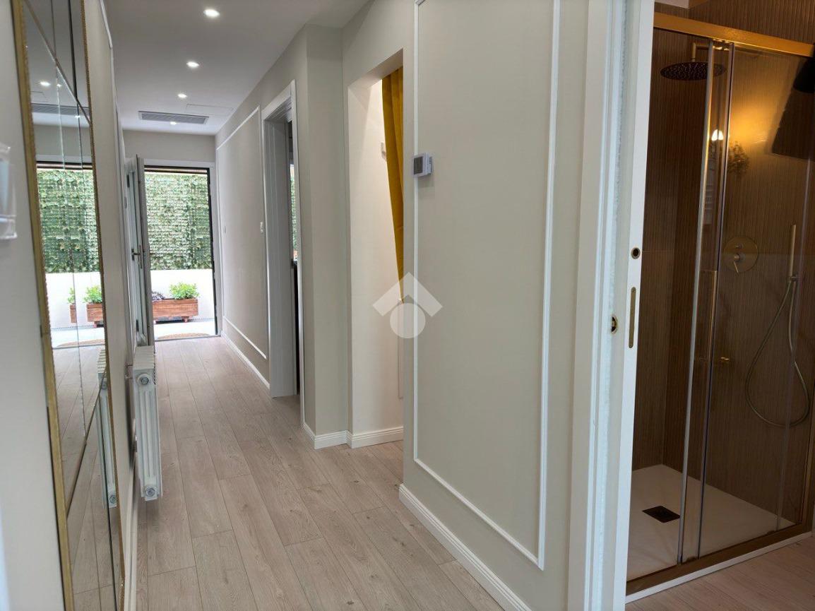 Alla fine del corridoio vi è una comoda porta finestra, tramite la quale è possibile accedere allo scoperto privato che impreziosisce la proprietà.