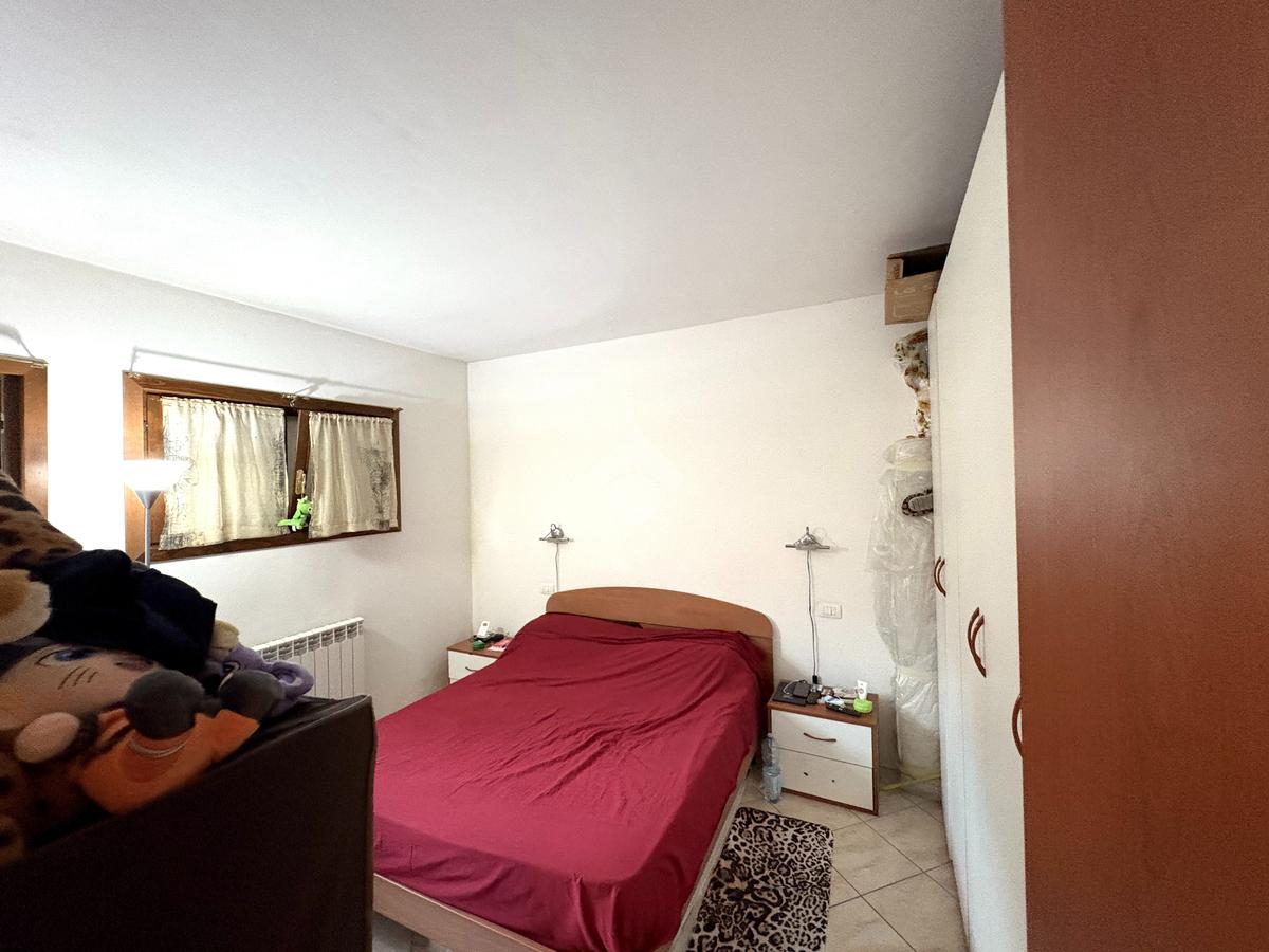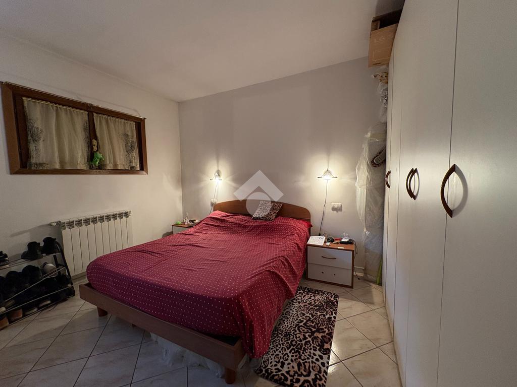 La zona notte si sviluppa sulla destra rispetto al soggiorno e comprende un disimpegno, una spaziosa camera matrimoniale ed un bagno finestrato completo di box doccia.