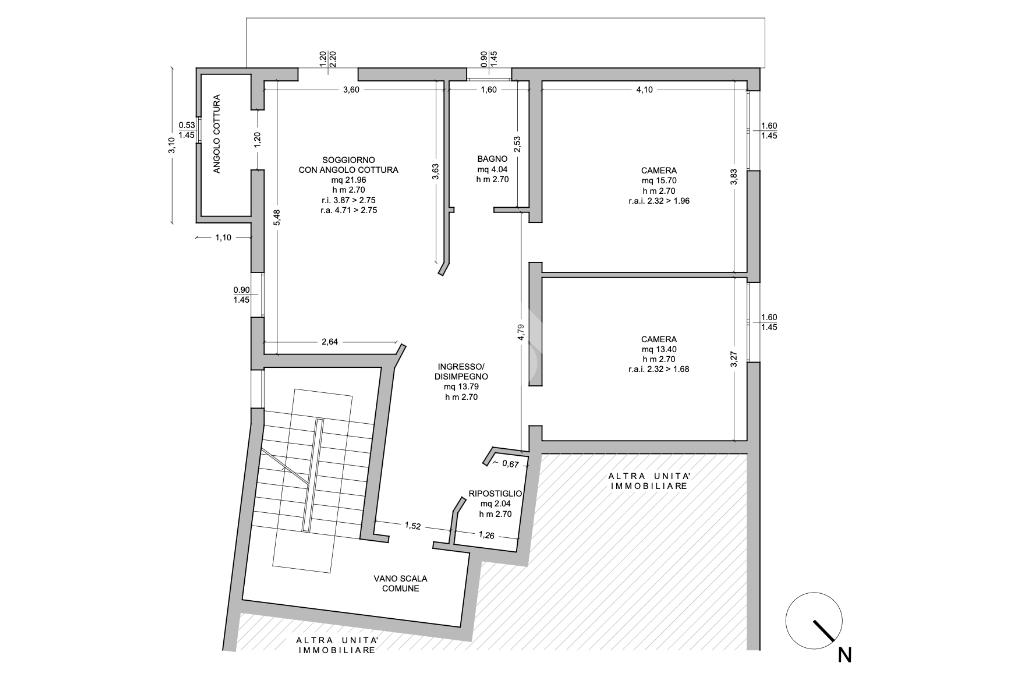L'ingresso si apre su un ampio disimpegno che conduce alla zona giorno, dove troviamo un soggiorno accogliente e luminoso di 22mq, ideale anche come sala da pranzo, affiancato da un cucinotto separato da una porta scorrevole in legno. Dal soggiorno si accede alla terrazza, sviluppata in lunghezza e con esposizione a ovest, perfetta per godere della luce naturale per gran parte della giornata.