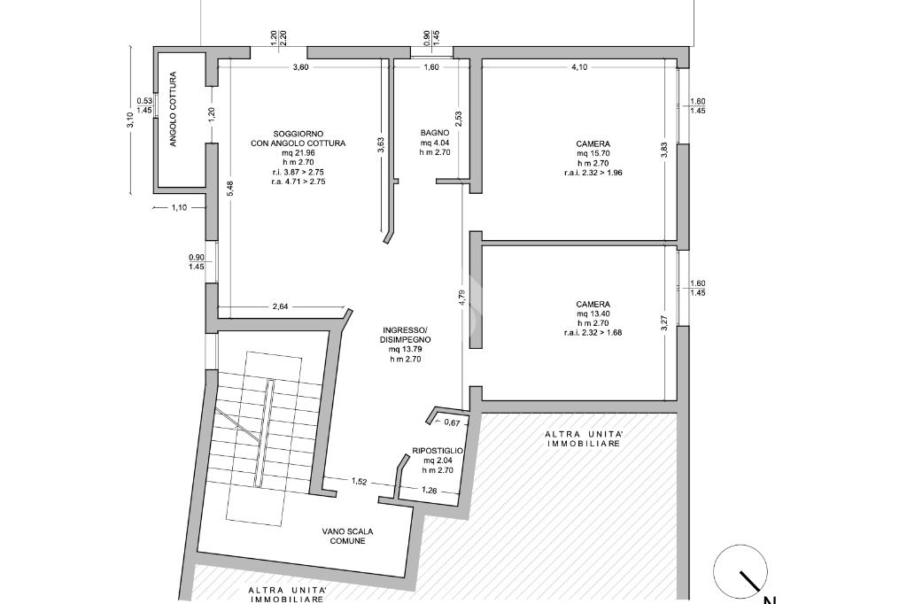 La zona notte, ben separata, si compone di due spaziose camere matrimoniali, entrambe di ottime dimensioni, esattamente di 13,40mq e 15,70mq e di un bagno finestrato con vasca.
