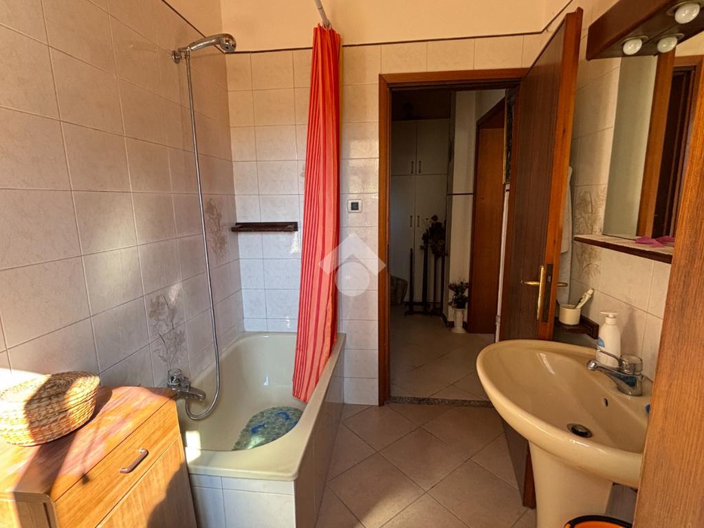 Un disimpegno porta alla zona notte, composta da una camera matrimoniale luminosa e da un bagno finestrato con vasca. Tutti gli ambienti principali sono esposti a sud, garantendo luce naturale durante tutto l’arco della giornata.