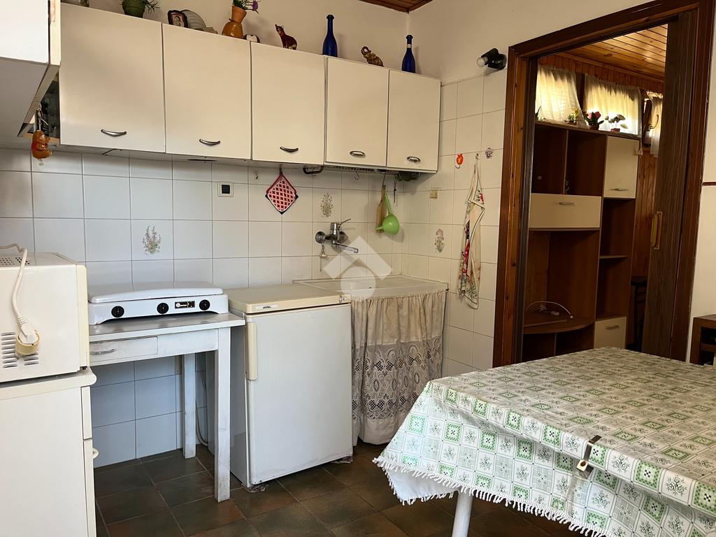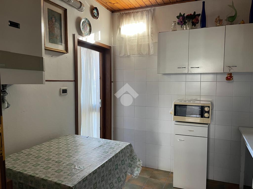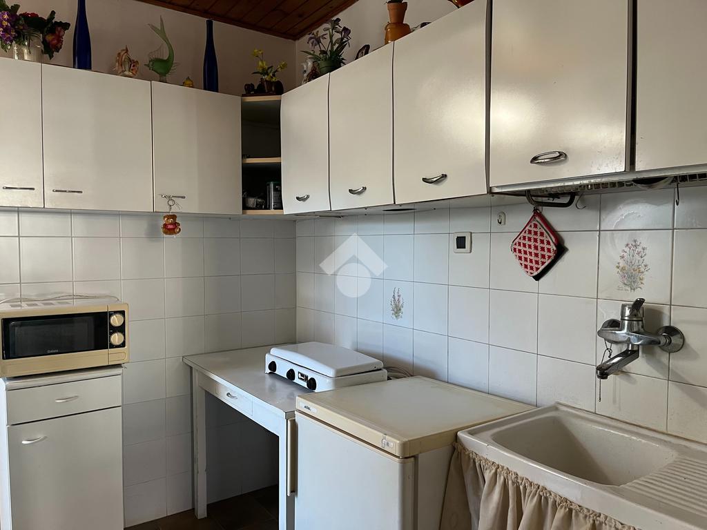 La zona giorno si sviluppa sulla destra, con un ambiente open space composto da cucina e soggiorno. Sulla sinistra si trova un comodo ripostiglio, ideale per organizzare oggetti e utensili di uso quotidiano.