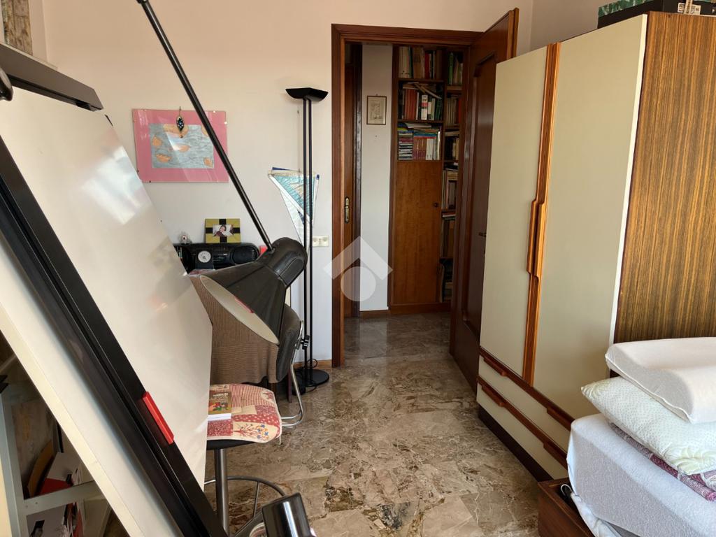 A completare la prima parte di appartamento c’è anche una prima camera singola ed un primo bagno cieco dotato di box doccia.