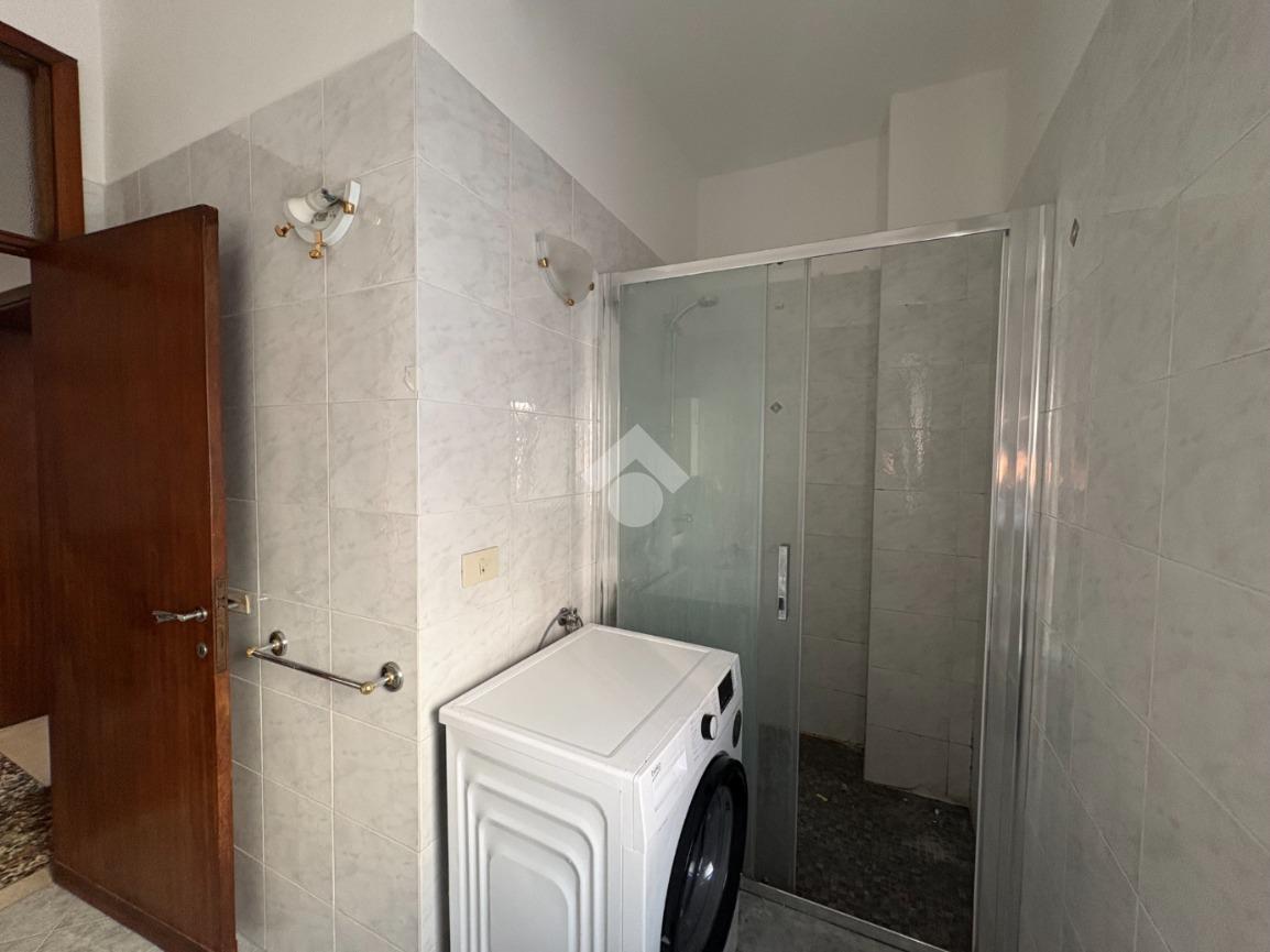 Proseguendo per il disimpegno troveremo sulla sinistra la zona giorno con la cucina e sala da pranzo. Successivamente troviamo il primo bagno finestrato con ampio box doccia. Oltre al bagno precedentemente citato, ne è stato ricavato un secondo di servizio, adiacente all'altro. Sul lato destro invece si trovano le altre due camere da letto.