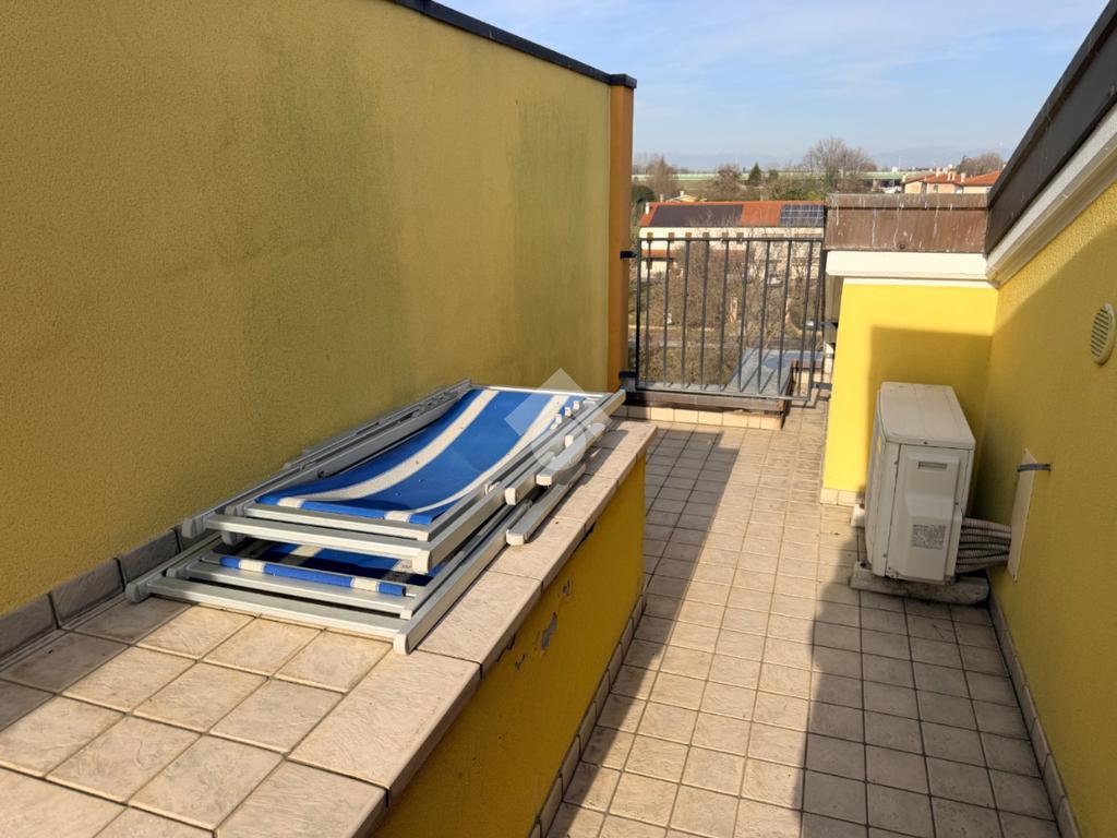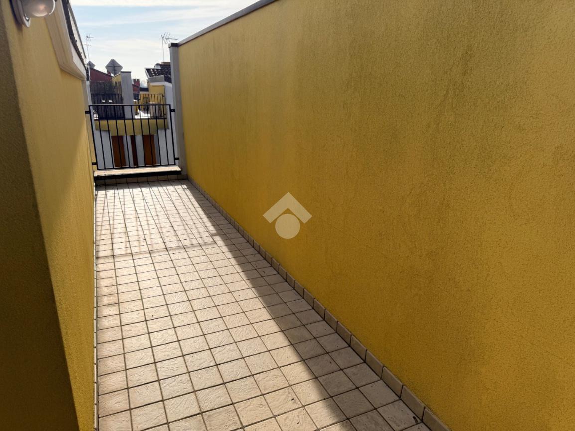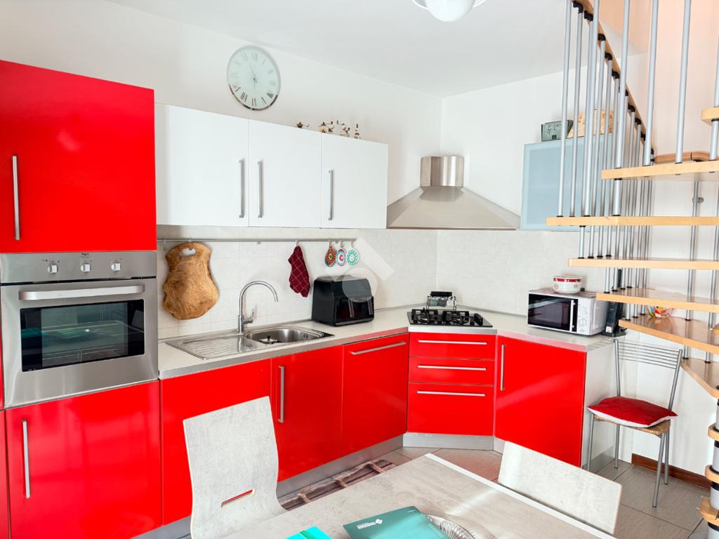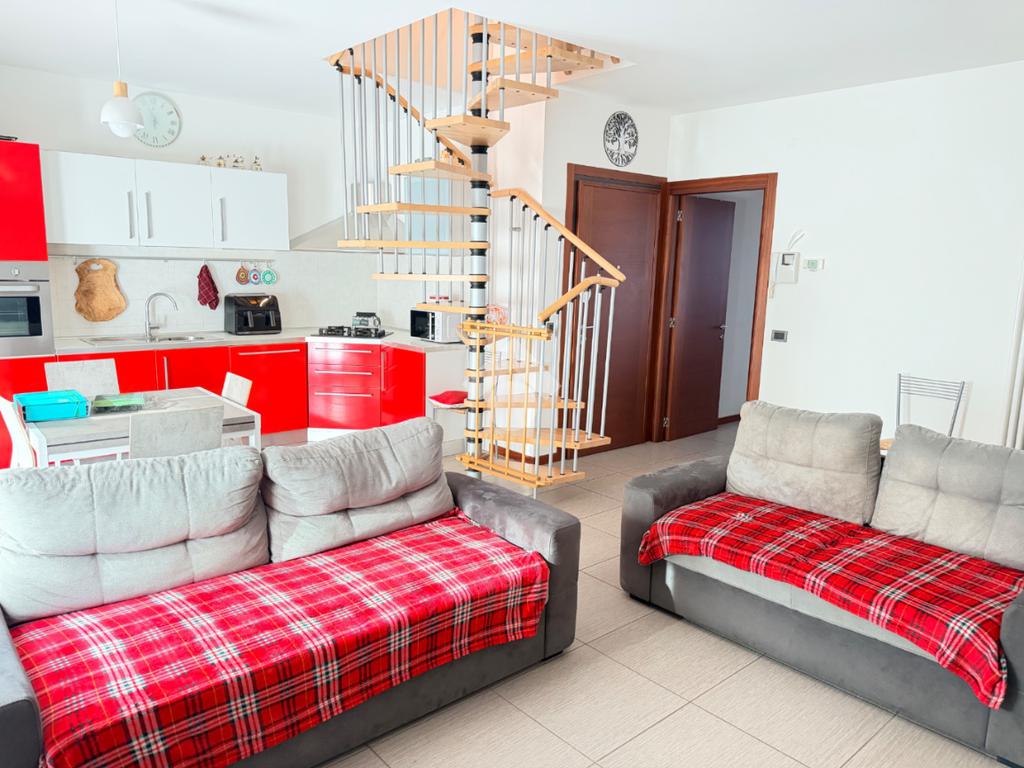 Un'elegante scala a chiocciola conduce al piano superiore, dove si trova un ampio ambiente praticabile ma non abitabile, oltre a una terza terrazza che percorre tutta la lunghezza dell'appartamento, offrendo una vista aperta e panoramica.