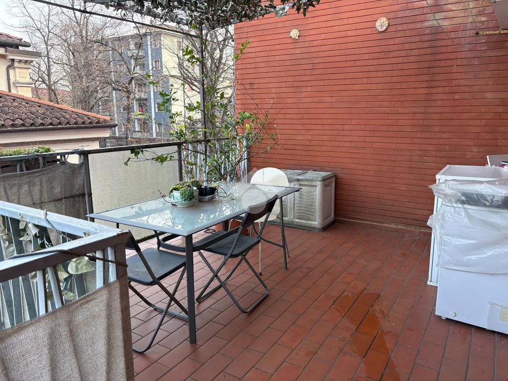 La zona giorno si completa con un ampio soggiorno separato anch’esso dotato di porta finestra mediante la quale si accede ad una seconda terrazzina che dà direttamente sul Viale Garibaldi.