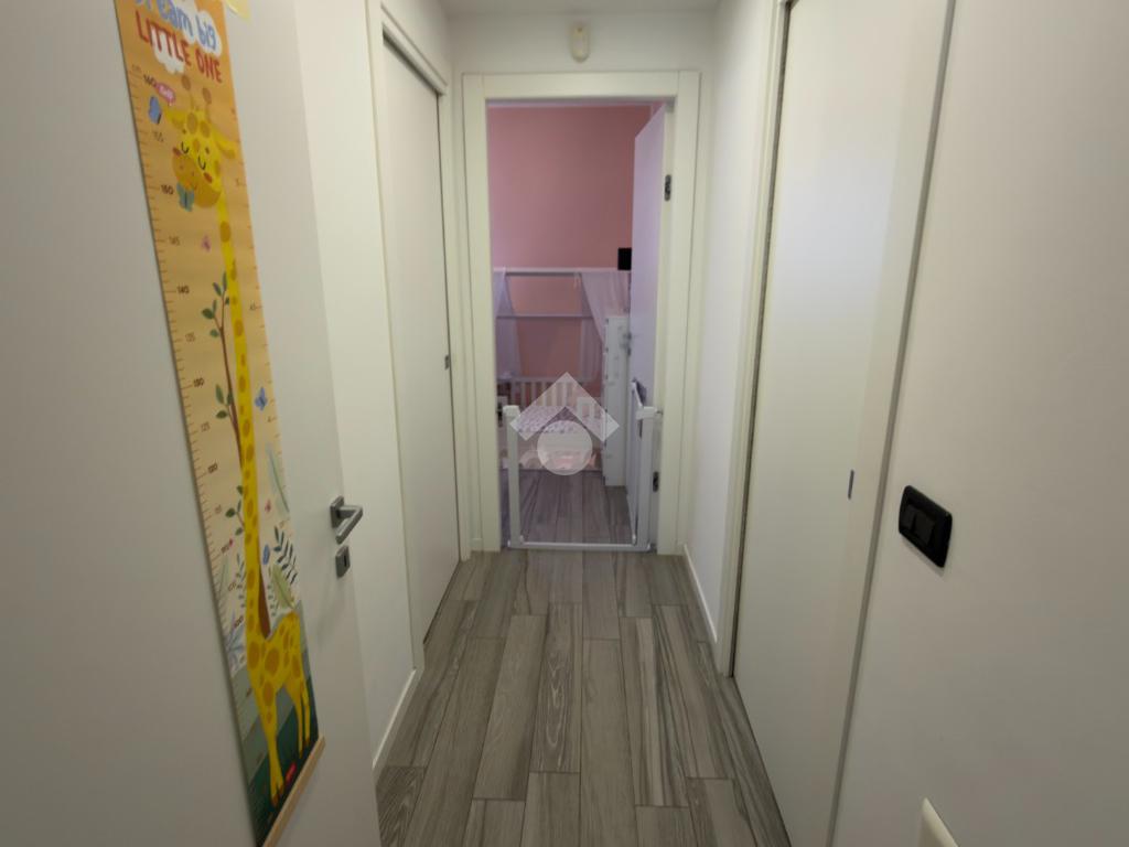 L'appartamento si trova al piano rialzato di una palazzina di recente costruzione, composta da sole quattro unità abitative, la soluzione ci ospita con un ingresso molto spazioso e luminoso con accesso diretto alla zona giorno composta da cucina e soggiorno open-space con accesso diretto al primo terrazzo abitabile, perfetto per momenti di convivialità all'esterno. Il terrazzo si affaccia sul piccolo scoperto di pertinenza, ideale per chi possiede animali domestici.