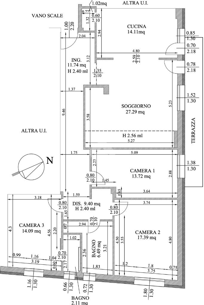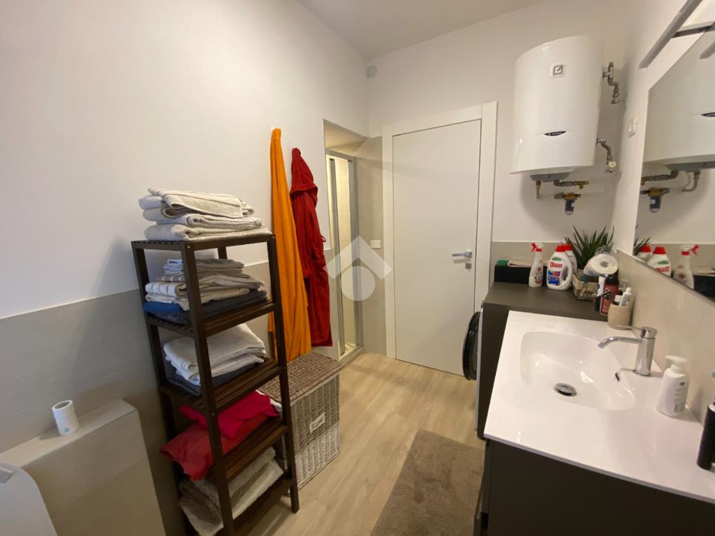 La palazzina presenta un comodo ascensore che parte da terra e mediante il quale si raggiunge il primo piano. All'ingresso dell'immobile troveremo un andito alla sinistra del quale si sviluppa la spaziosa e luminosa zona giorno composta di cucina con soggiorno openspace. Dalla cucina inoltre, mediante porta finestra, si accede alla terrazzina ristrutturata col superbonus 110% effettuato nel 2021.