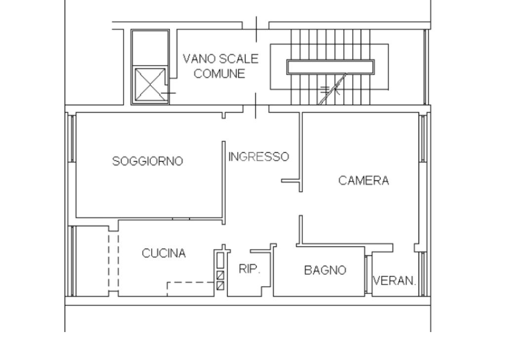 L’immobile è composto da un ampio ingresso dotato di pratici armadi a muro, ideale per ottimizzare gli spazi. La zona notte comprende una camera matrimoniale molto grande, con accesso diretto a una graziosa terrazza verandata, perfetta come spazio relax o studio.