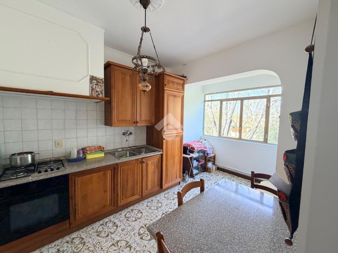 La cucina è abitabile, spaziosa e particolarmente luminosa grazie alle ampie finestre. Il soggiorno, di generose dimensioni, offre la possibilità di essere facilmente trasformato in una seconda camera, rendendo l’appartamento versatile e adatto a diverse esigenze abitative.