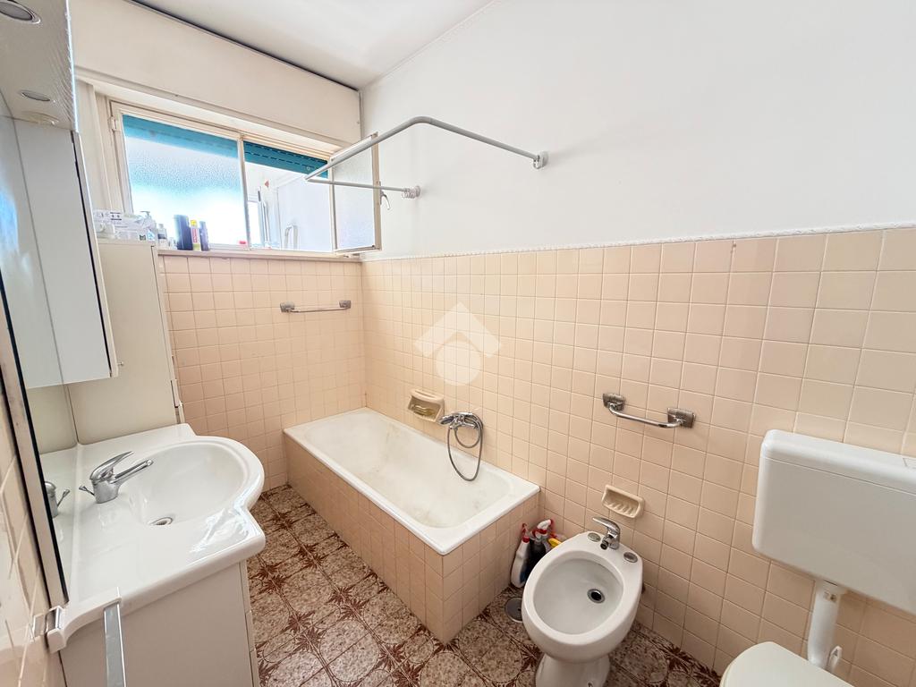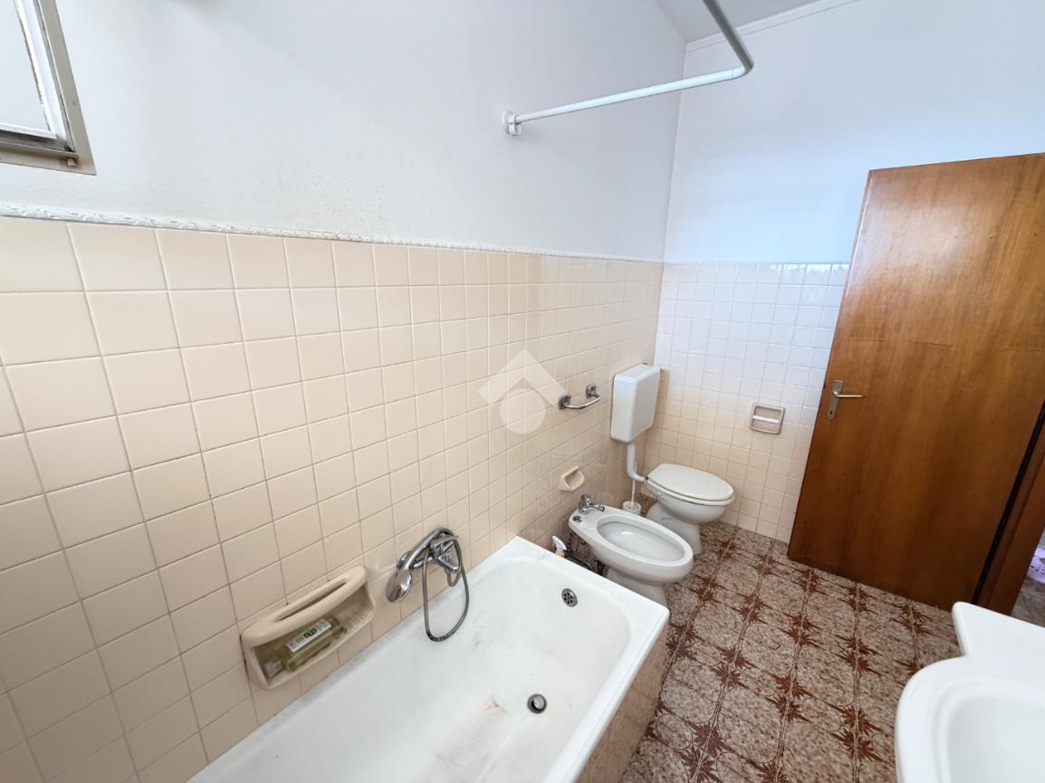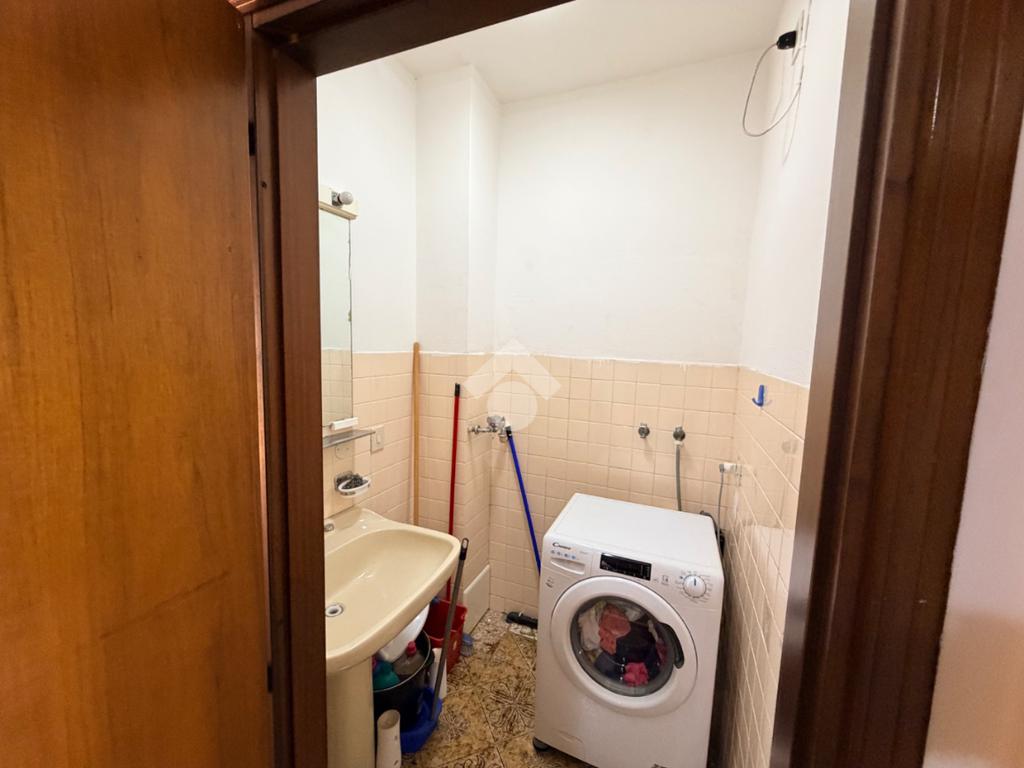 Il bagno è finestrato e completo di vasca. È inoltre presente un comodo ripostiglio con alloggio per lavatrice e lavandino.