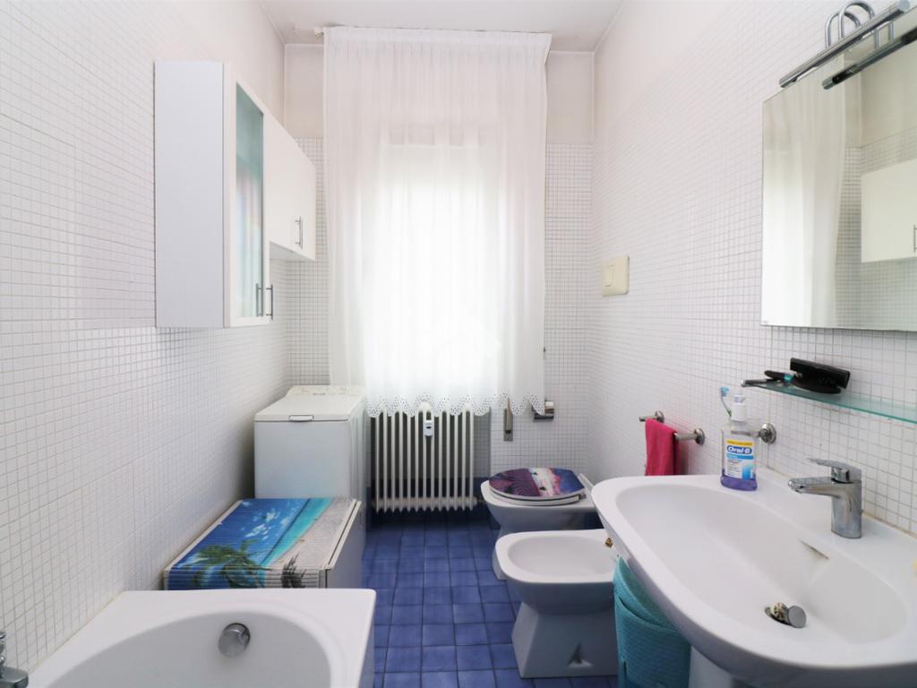 La zona notte, ben separata e con esposizione a ovest, comprende due camere da letto di generose dimensioni, una matrimoniale e una singola, oltre a un bagno finestrato completo di vasca.